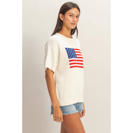 American Flag Knit Top: Cream