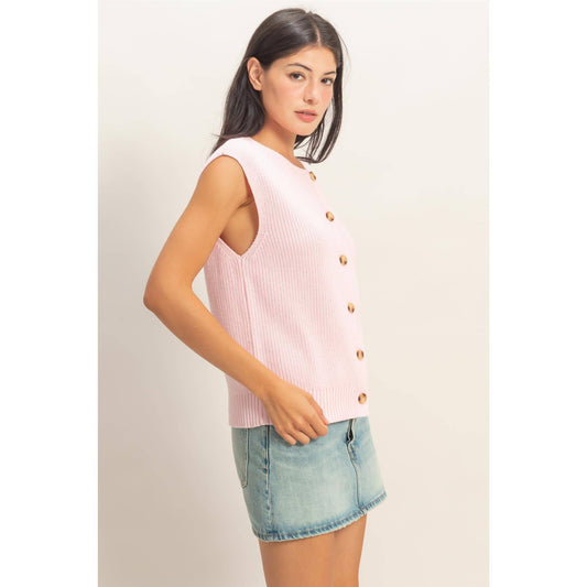 Sleeveless Button-Up Ribbed Vest: Soft Pink