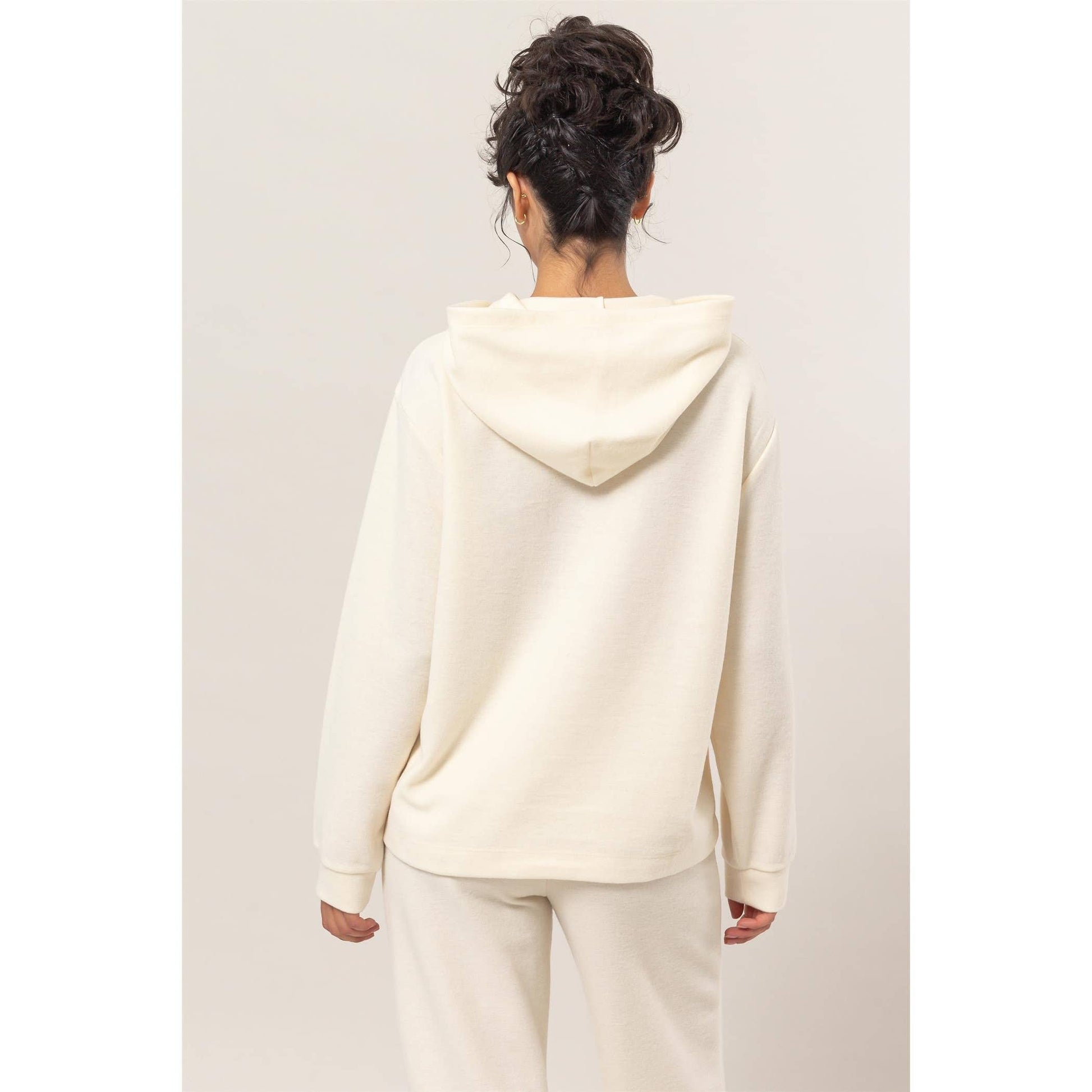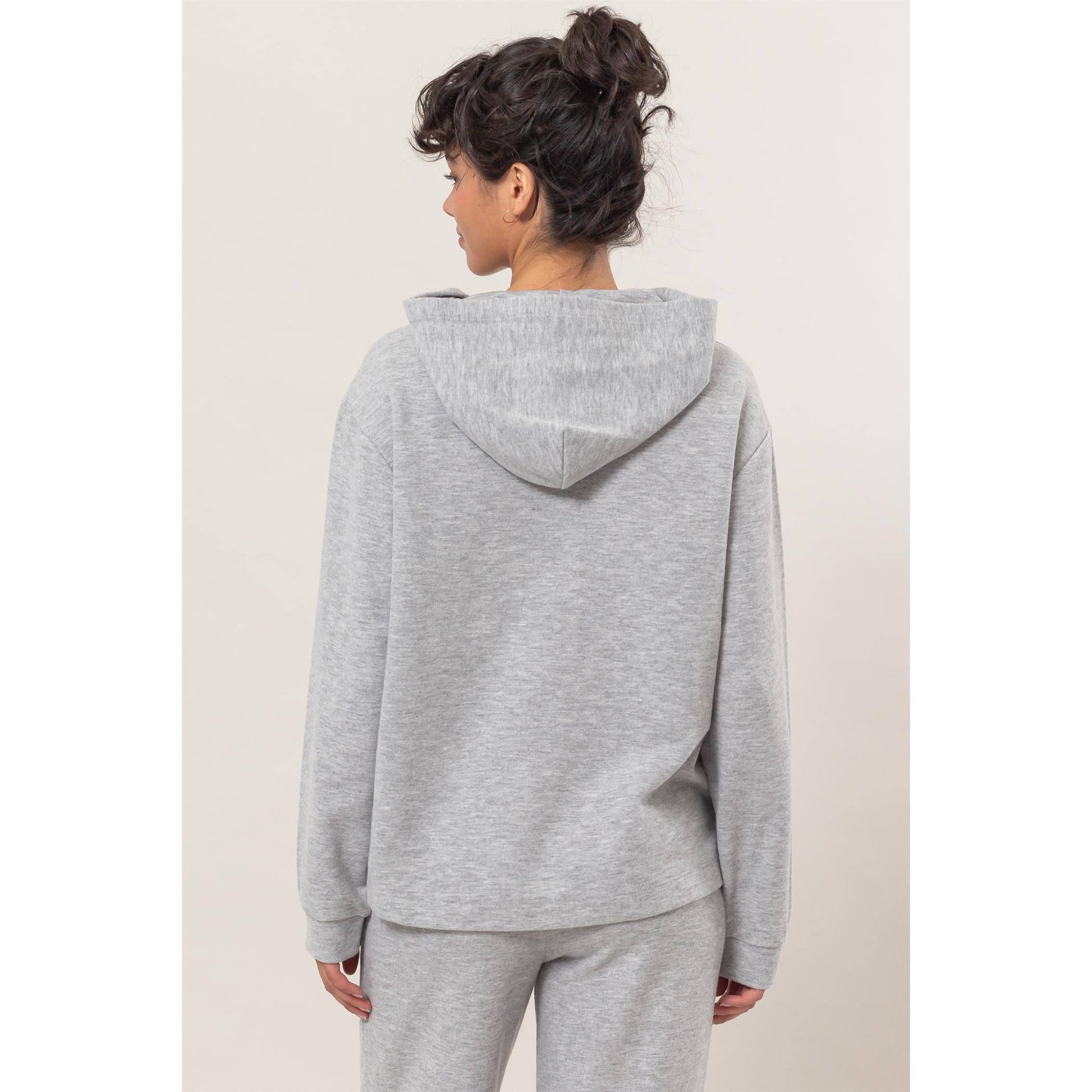 he Lilah Hoodie is your answer to laid-back comfort with a sporty twist. Designed with a relaxed silhouette, drop shoulders, and cinched cuffs, this soft heathered hoodie is just right for cozy days or casual outings. Easy to pair with denim, leggings, or matching lounge bottoms, it’s the piece you’ll reach for again and again.