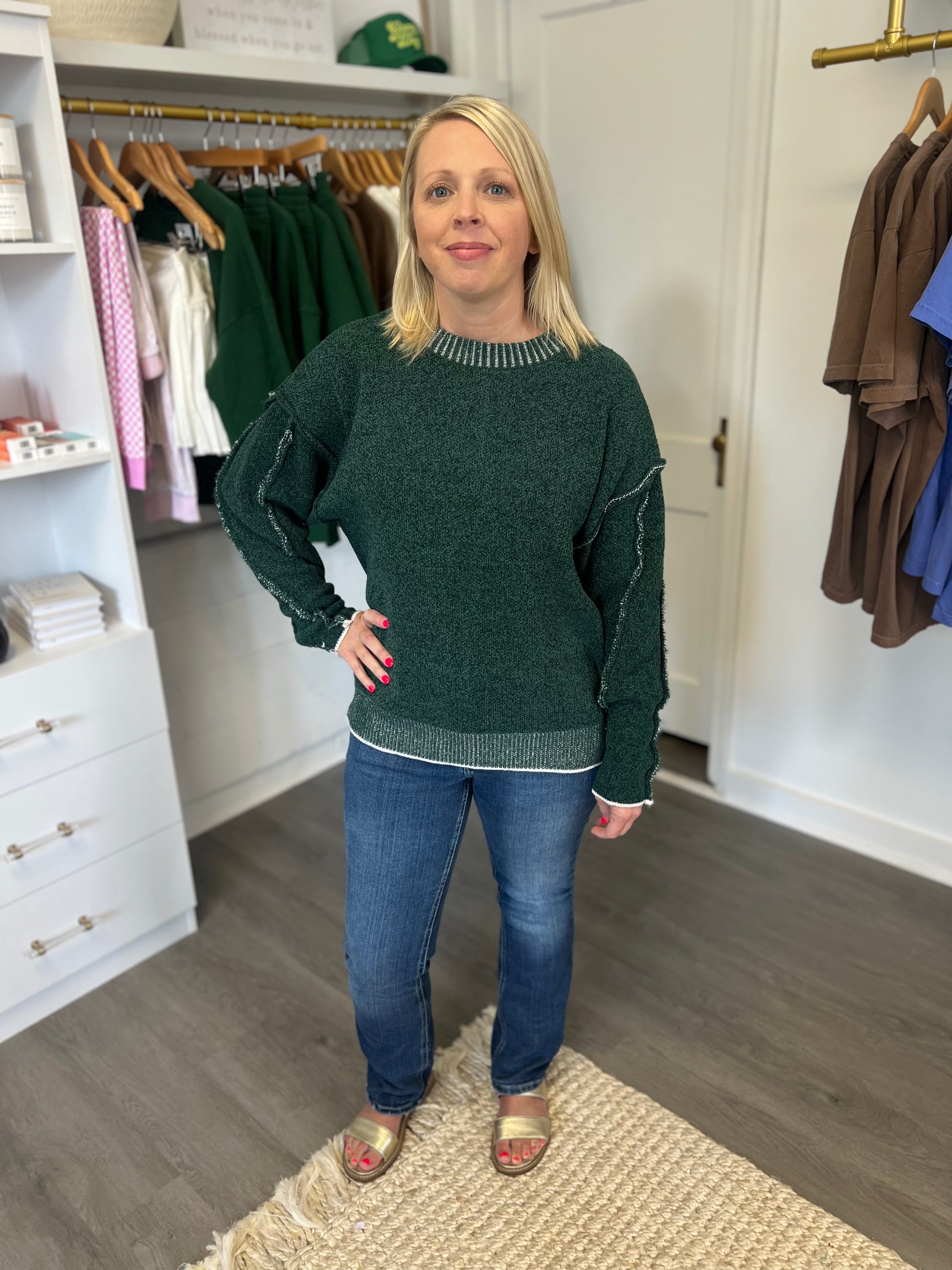Cozy meets classic in the Elsie Sweater. Designed with unique exposed hems, it has just the right amount of detail to stand out while staying timeless. Subtle seam accents along the sleeves add a touch of texture, and the relaxed fit makes it an easy everyday favorite.