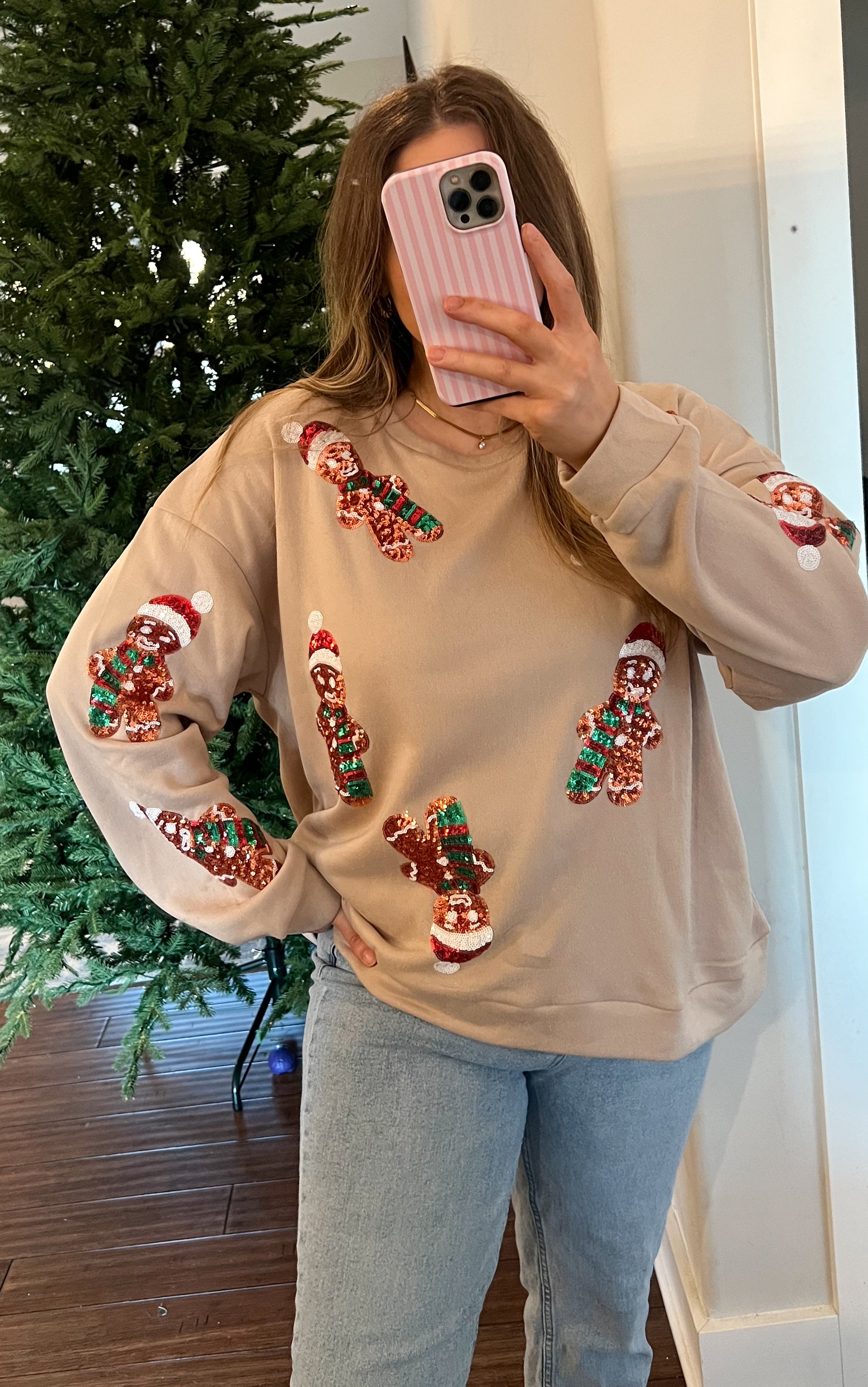 Sweet, fun, and full of personality — this gingerbread sequin sweater is the ultimate feel-good holiday piece. The shimmer design stands out beautifully while the fleece fabric stays soft and wearable all day long.